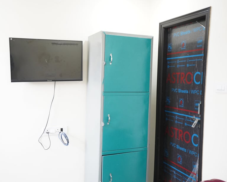 Each room includes a personal TV and an almirah for entertainment and organized storage.